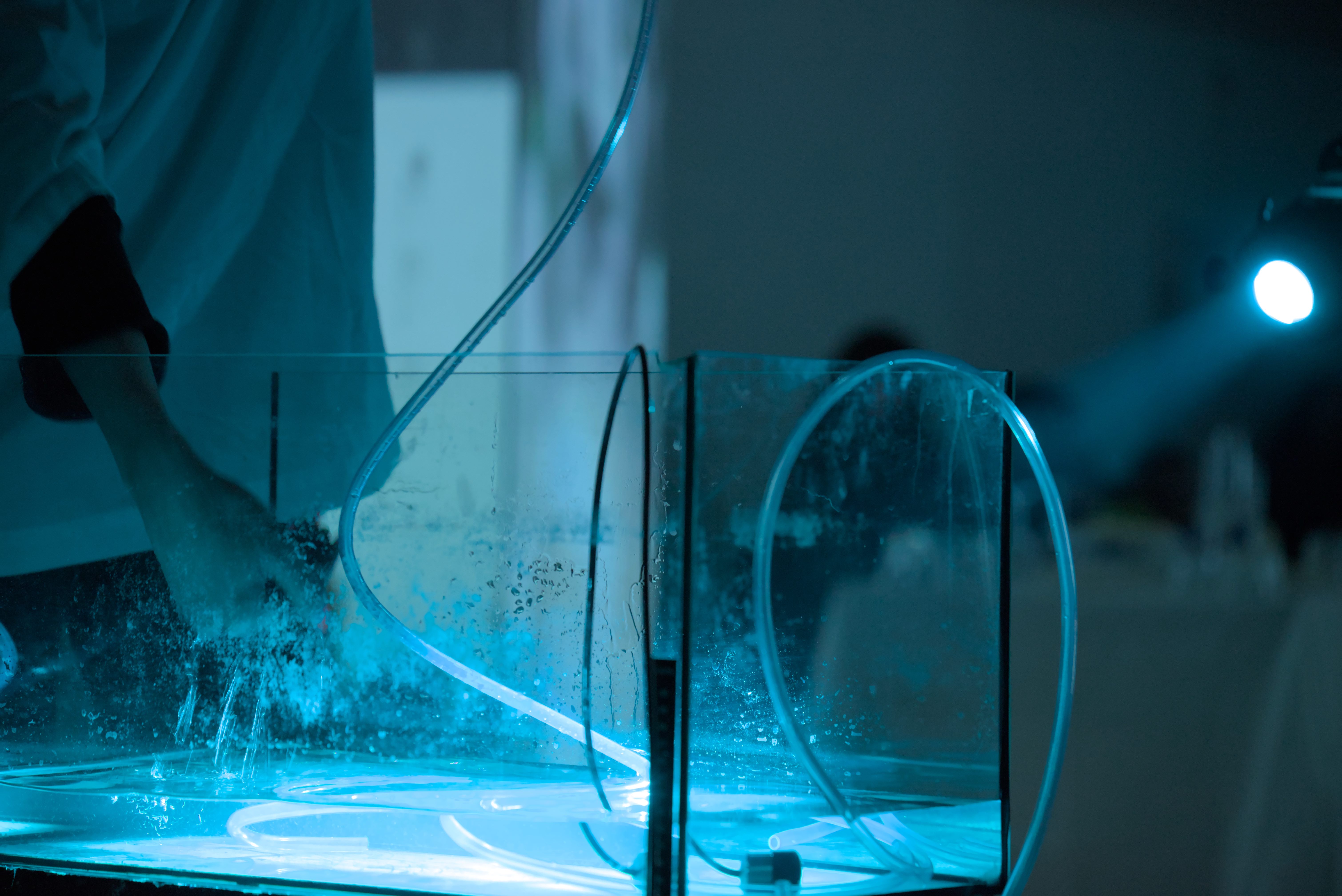 Umetnici se bosta v ustvarjalnem procesu posvetili procesom metamorfoze in iskanju nebinarnosti bivanja v kontekstu razumevanja človeka kot vodnega telesa, predvsem v smislu odlaganja zakrnelih oblik in oblikovanja novih stanj prisotnosti, ki temeljijo na odnosih in sobivanju. Nebinarnost razumeta kot način preseganja osebnih in družbenih ustaljenosti, norm in zapovedi ter kot brisanje ostrih meja med polarnostmi. Metamorfoza reorganizira prostor in odpira teren za vznik novih, neznanih križanskih teles.