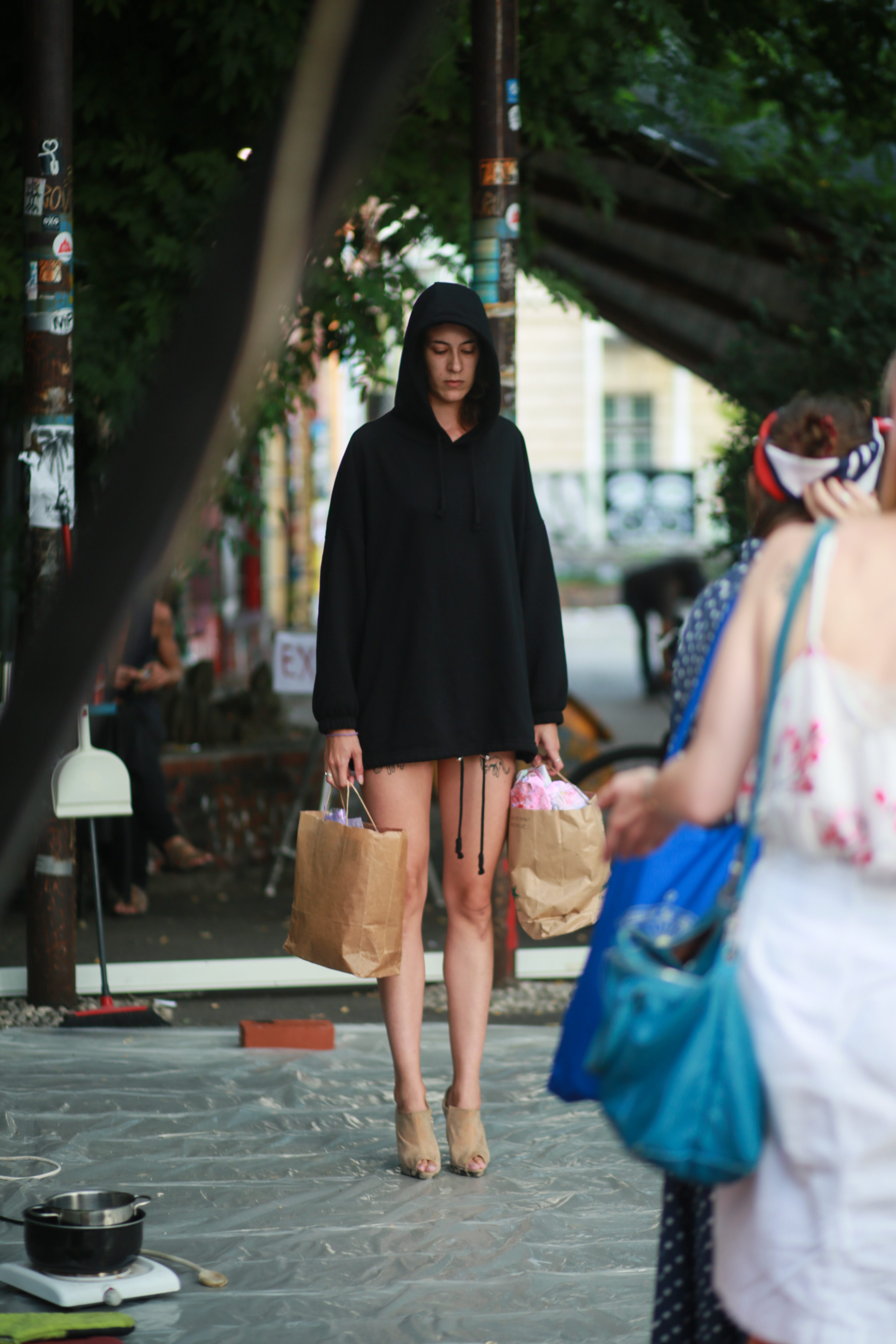 Performances of this kind are created by intertwining the artist's body and physical objects that carry important value and significance, since they are fragments and traces reminding past events. The accumulating and storage of precious memories of events, experiences and feelings can be burden for the artist and her creative environment. After years of performing, thinking about reusing materials has become a more significant issue, specially regarding plastic objects.