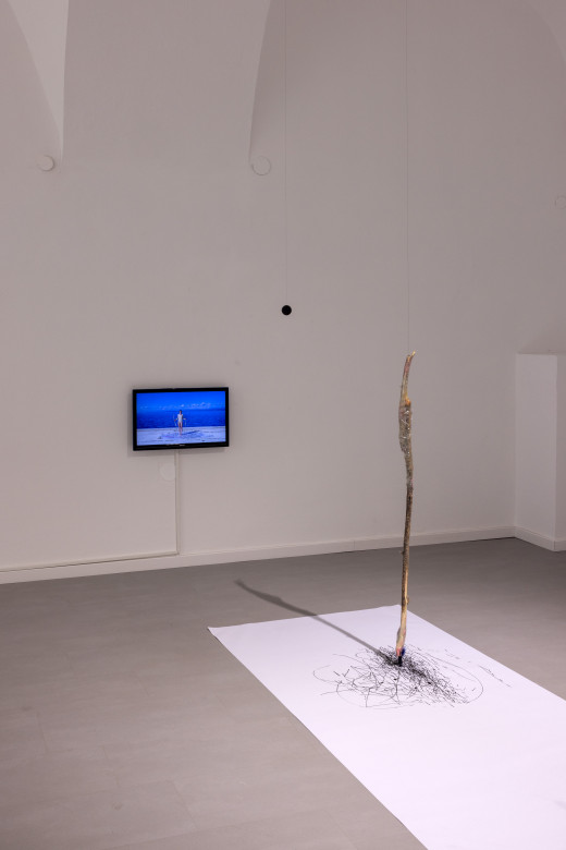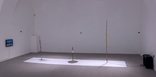 Kinetično instalacijo sestavljajo tri analogno mehaniziranih lesenih palic. Palice so osrednji elementi treh (video)performansov: Sončnica, 1,5, 1,5 + Asinhronost. Performansi so temeljili na alternativnem načinu sporazumevanja z okolico v času restrikcij, omejenega gibanja in neželjenega dotika preteklih dveh let. Palice obravnavam kot relikvije / ostanke, ki imajo pomembno vrednost saj v sebi nosijo spomine na že minula telesna stanja umetničinega komuniciranja z javnostjo. Obiskovalke-ci so lahko vplivali na premikanje palic, ki so skozi interakcijo z gledalko ponovno oživele - puščale sledi na podlagi in proizvajale zvok ter tako ohranjale performativni aspekt večletnega raziskovalnega dela.